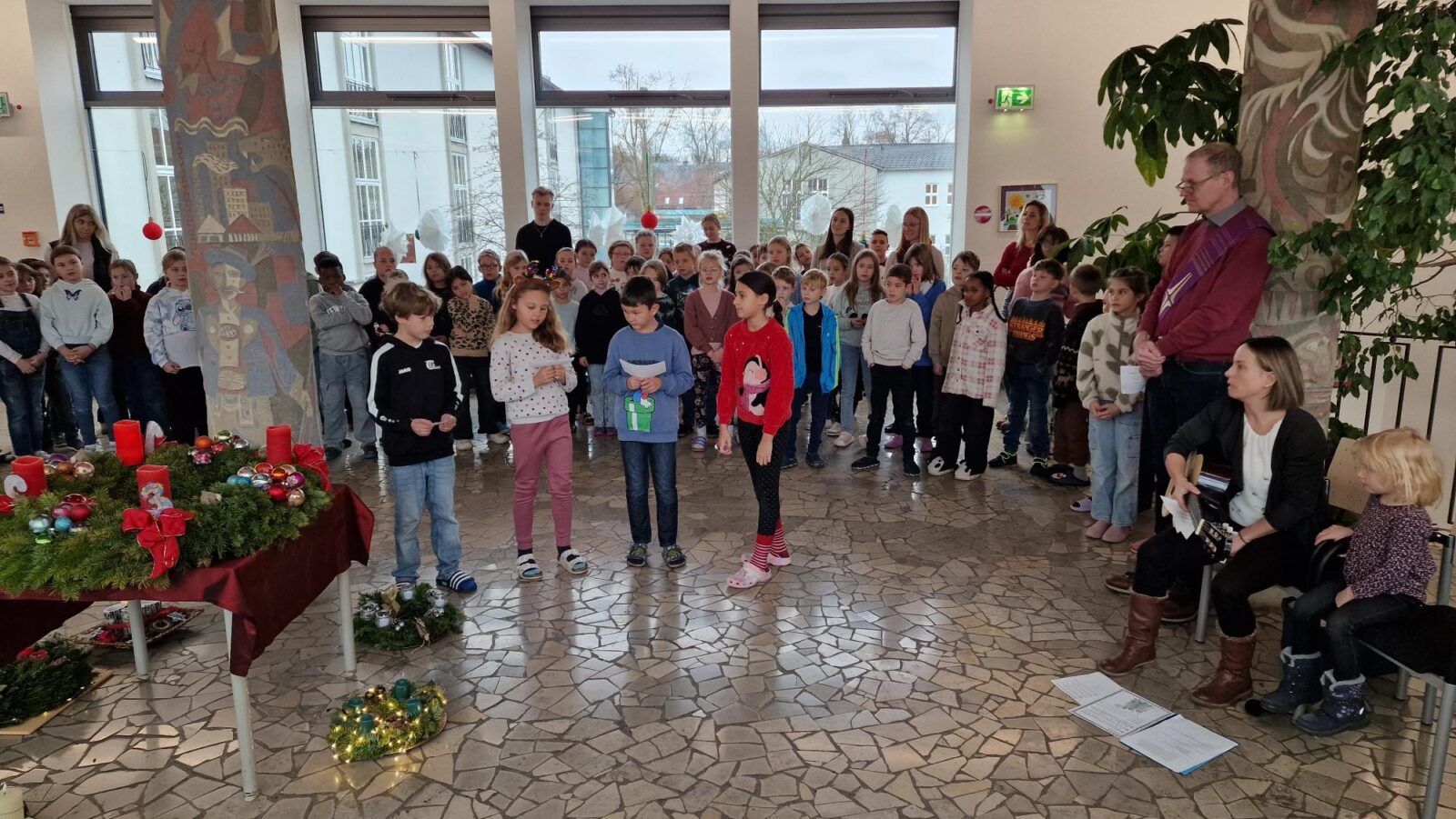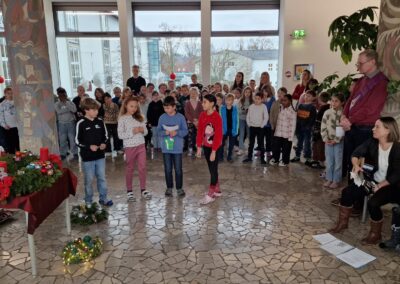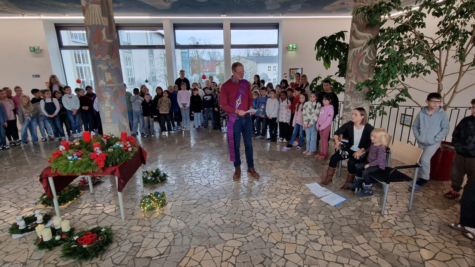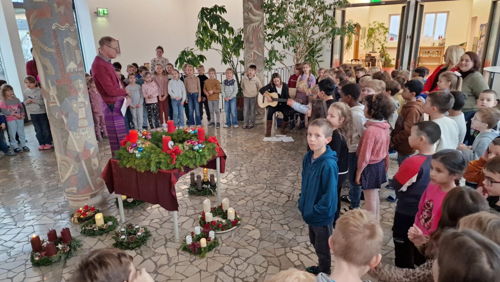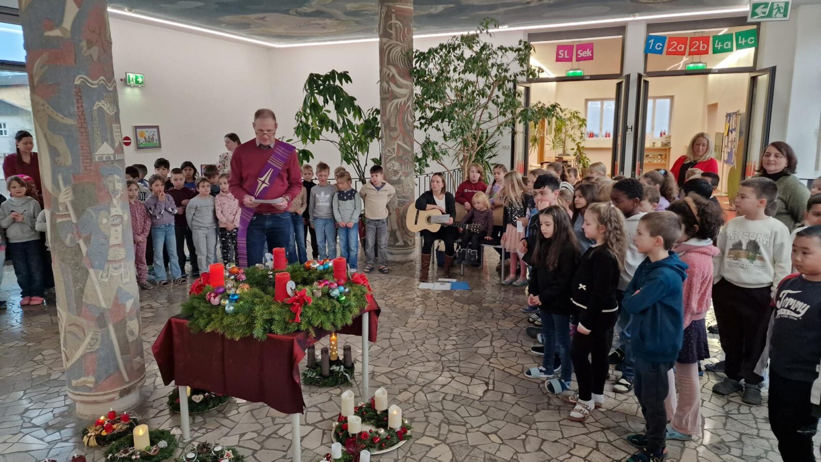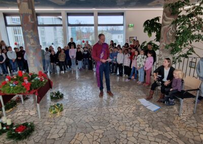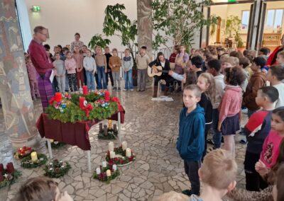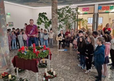 Am 1.Dezember wurden von Diakon Herth die Adventskränze der einzelnen Klassen gesegnet. Frau Steinberger begleitete uns mit ihrem Gitarrenspiel.